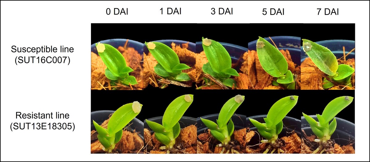 Khairum A, Hualsawat S, Chueakhunthod W, Tharapreuksapong A, Tomsantia B, Yenchon S, Tantasawa PA. 2022. Selection and characterization of in vitro-induced mutants of Dendrobium ‘Earsakul’ resistant to black rot. In Vitro Cell Dev Biol Plant. 58: 577–592.