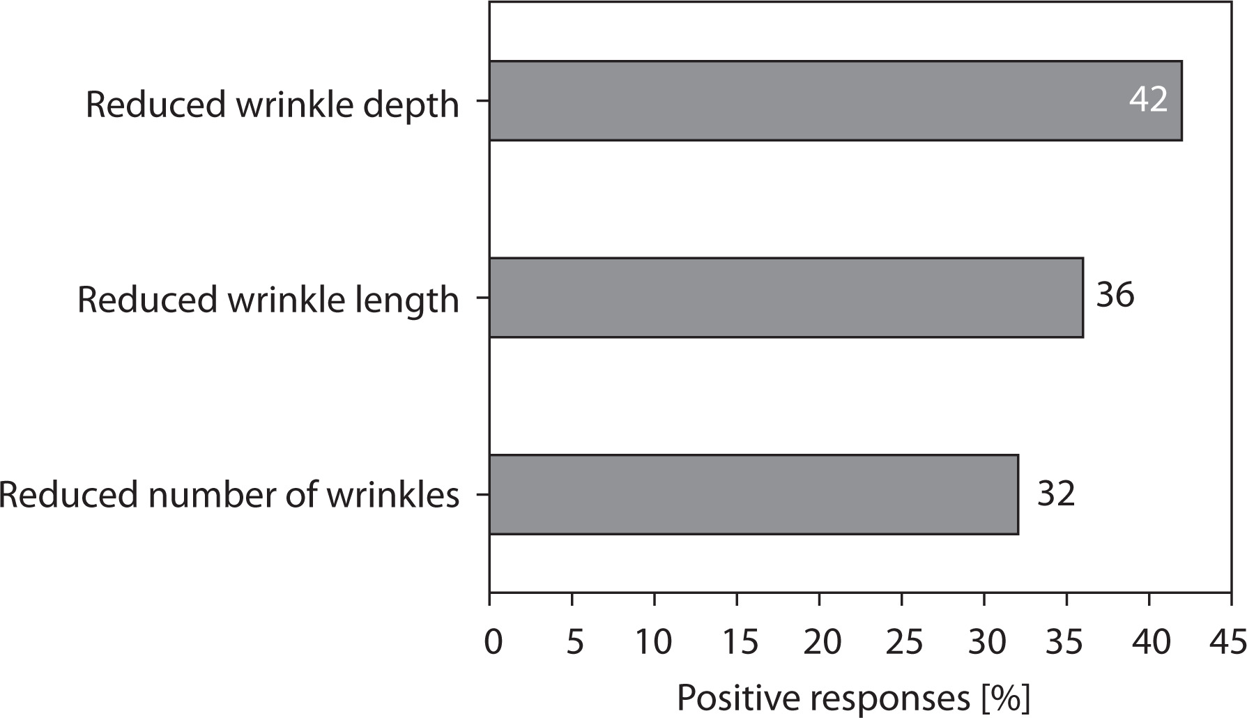 The results of the patient satisfaction survey addressing perceived changes in wrinkle parameters are presented in Figure 8. Approximately one-third to two-fifths of participants perceived a visible reduction in wrinkle depth or prominence, which is consistent with the expected activity of the active ingredient, conotoxin TIIIA. These subjective findings complement the objective 3D imaging assessments, together indicating potential anti-aging effects of the formulation.