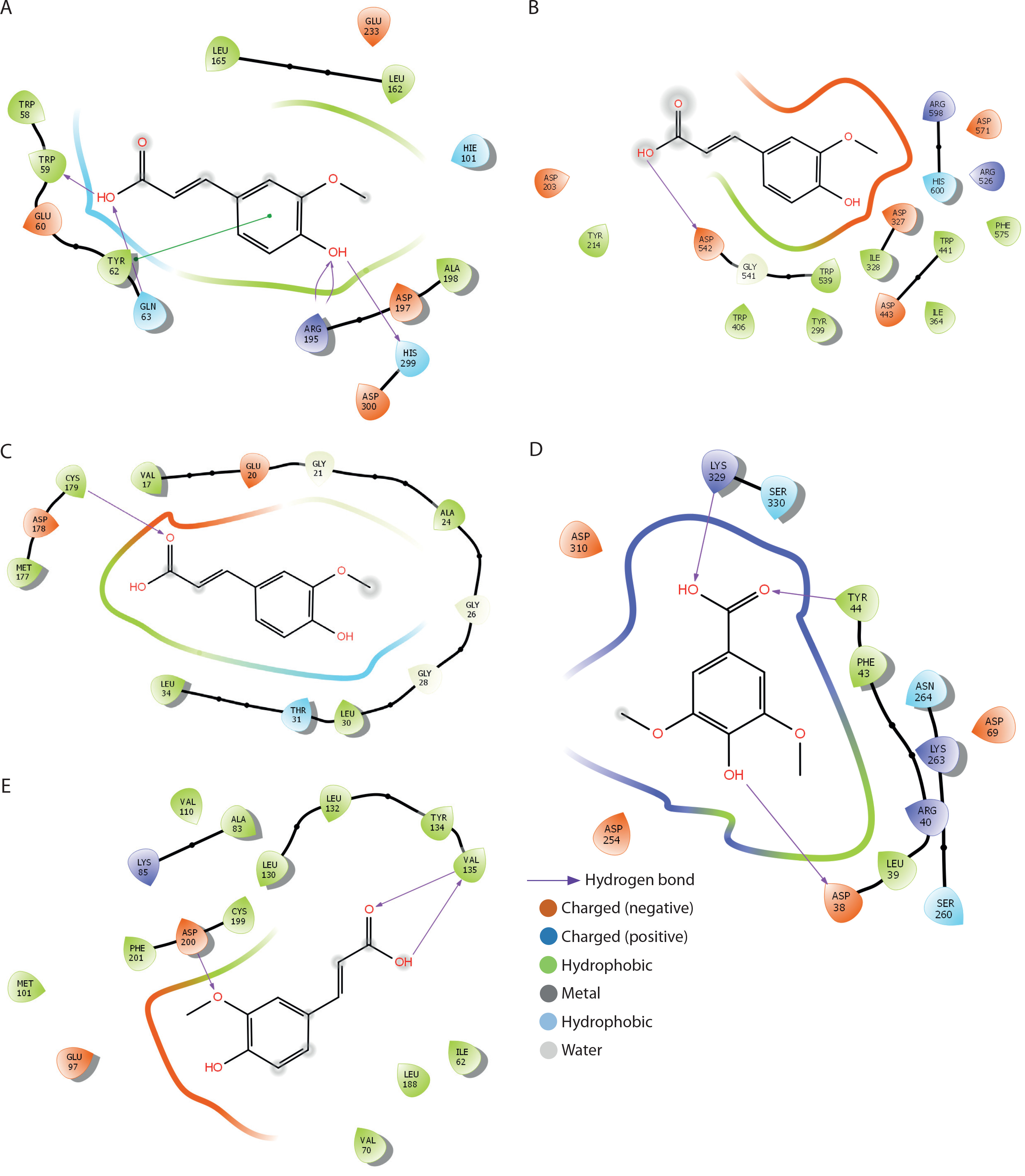 Docking analysis of ferulic acid against carbohydrate-metabolising enzymes