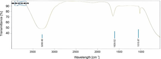 The peaks of the pure sample of curcumin was observed at 3506.46, 1626.57, 1601.18, 1505.79, 1427.38, 1315.42, 1273.17, 1231.99, 1203.98, 1181.75, 1151.40, 1114.14, 1025.30, 977.65, 961.68, 885.37, 855.77, 807.70, and 714.16 cm-1 and nimbin peaks were observed at 3327.00, 2939.72, 2832.31, 1603.97, 1399.09, and 1020.28 cm-1. The polymeric-based curcumin–nimbin loaded nanosuspension peaks were observed at 3283.60, 1639.52, and 1015.67 cm-1.